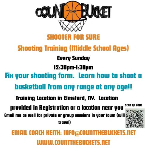 This is where your young loved ones turn the corner in the game of basketball by learning the core fundamentals and learning the concept of Shooting a basketball with higher accuracy at any age! Get your game and confidence going with Count The Bucket!!! Sign up today!